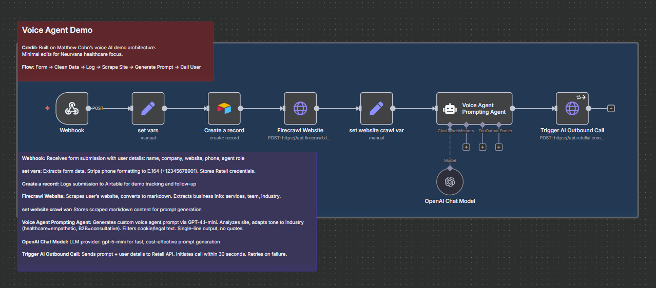 This prototype is built on the foundation of Matthew Cohn’s voice AI demo architecture. His innovative approach to instant voice agent generation inspired this healthcare-focused adaptation.